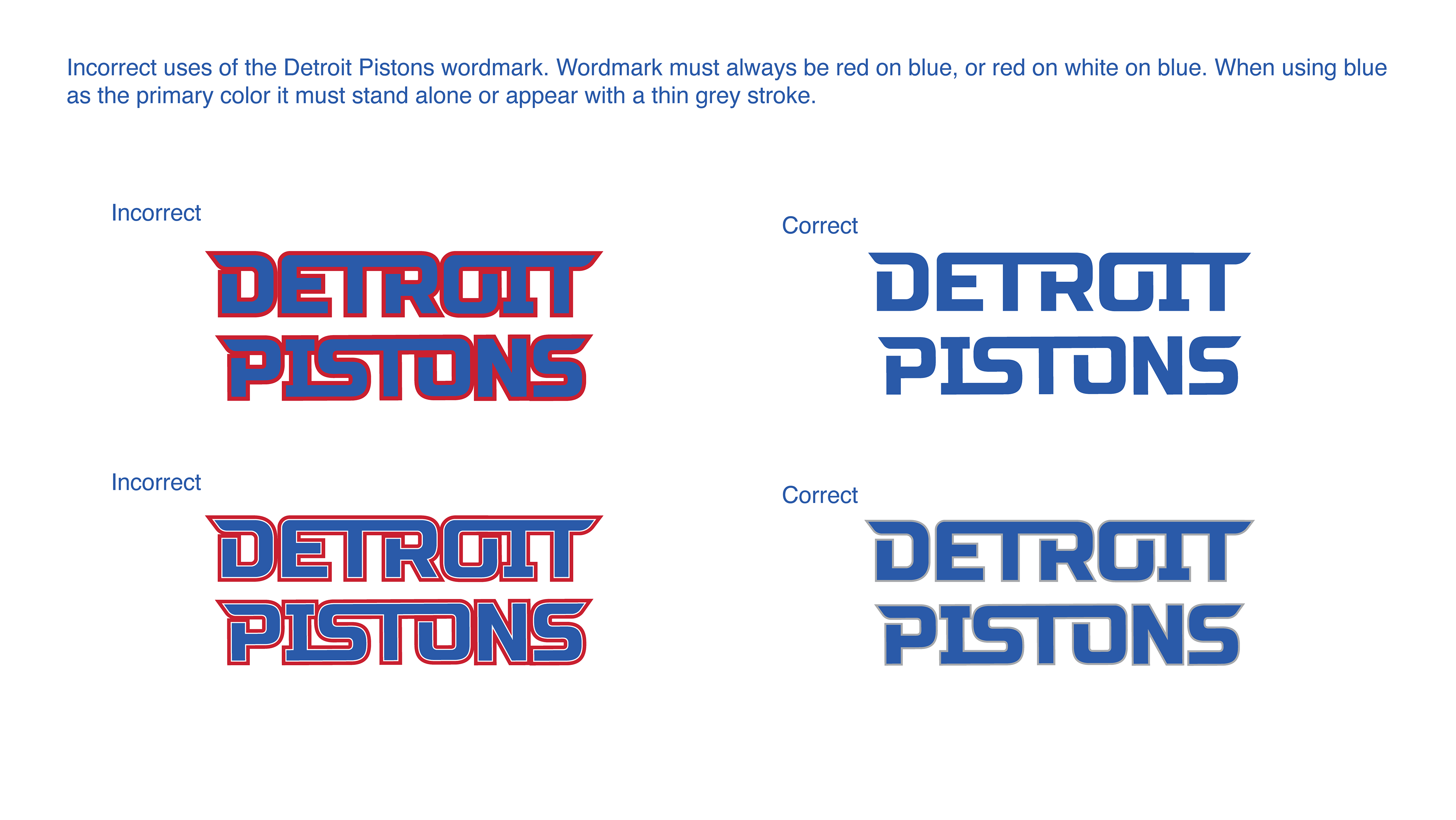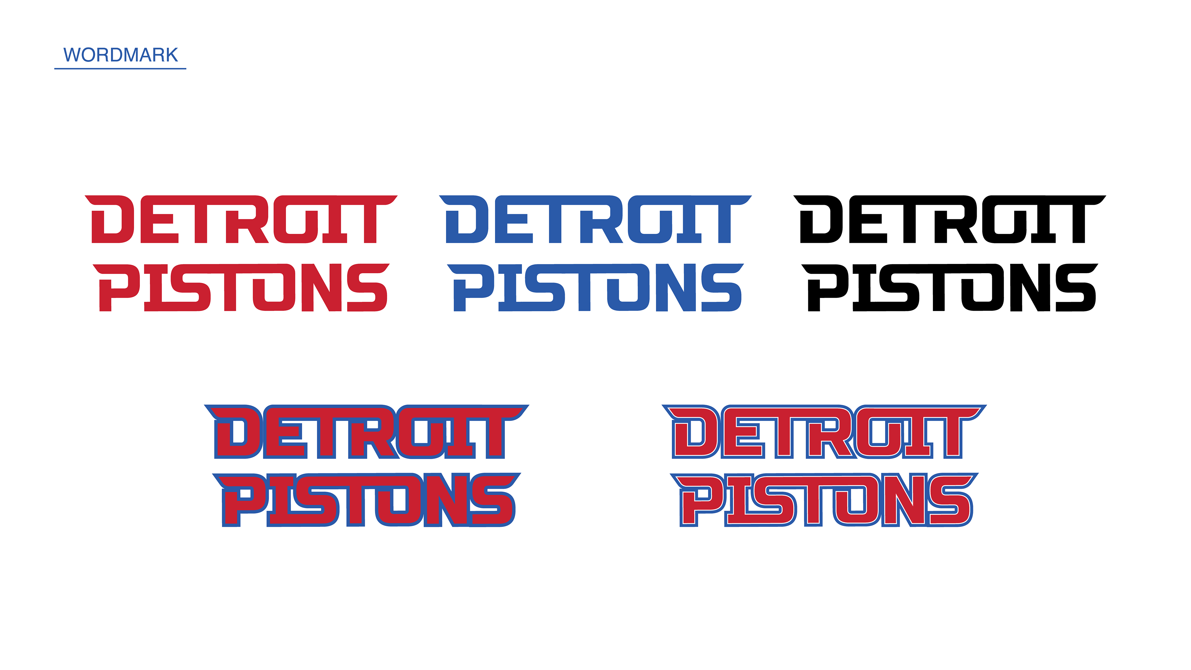 The Challenge: The main challenge when attempting a Detroit Pistons rebrand is to not fall back on the 1990's Horsepower/Teal era. These designs, logos, and jerseys are popular among fans and are great for nostalgia, but they are not going to move the brand forward in a sensible manner. It was evident that the current visual system needed to evolve, not simply revert to a previous time period.