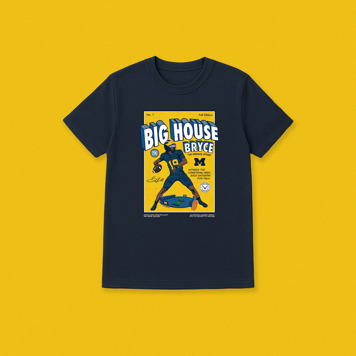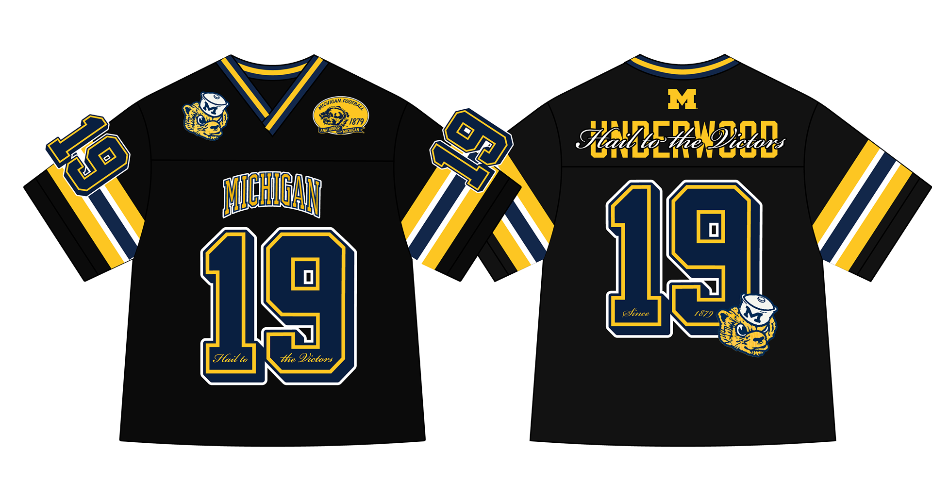 Additional: A series of experimental jersey concepts created for star quarterback Bryce Underwood. The idea explored three streetwear-forward Michigan jerseys and a Detroit jersey, Underwood's home city.